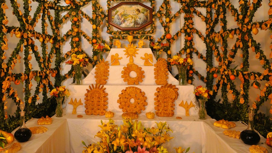 pictured: a Saint Joseph’s altar in Salemi, Sicily featuring a stunning array of homemade votive breads